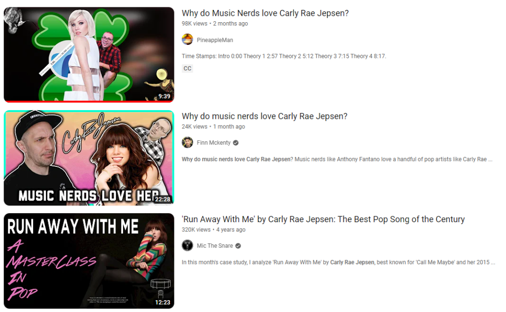 Pitchfork ranked Carly Rae Jepsen’s Emotion 34th on their list in 2015. First of all, I was surprised to see her album on the list at all. At that point, I only knew her as the “Call Me Maybe” one-hit wonder artist and for that one cheesy song she did with Owl City. I always thought Pitchfork was run by hipster snobs who thought all pop music was bad, but as it turns out, Jepsen is a darling among music nerds! Since 2015, I’ve learned that Anthony Fantano from The Needle Drop on YouTube has always thought highly of her music. Recently I even watched a video on YouTube about this exact topic:
